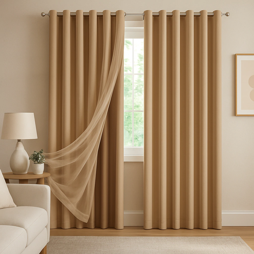 Transforme sua casa em um refúgio aconchegante com a cortina blackout e voil. Enquanto o blackout em poliéster bloqueia até 80% da luz, o voil adiciona leveza e elegância ao ambiente. Juntos, eles equilibram perfeitamente conforto, estilo e privacidade, criando um espaço acolhedor e encantador em qualquer hora do dia.