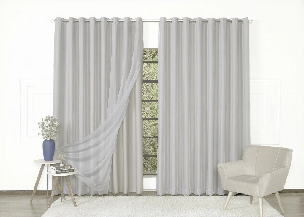Transforme sua casa em um refúgio aconchegante com a cortina blackout e voil. Enquanto o blackout em poliéster bloqueia até 80% da luz, o voil adiciona leveza e elegância ao ambiente. Juntos, eles equilibram perfeitamente conforto, estilo e privacidade, criando um espaço acolhedor e encantador em qualquer hora do dia.