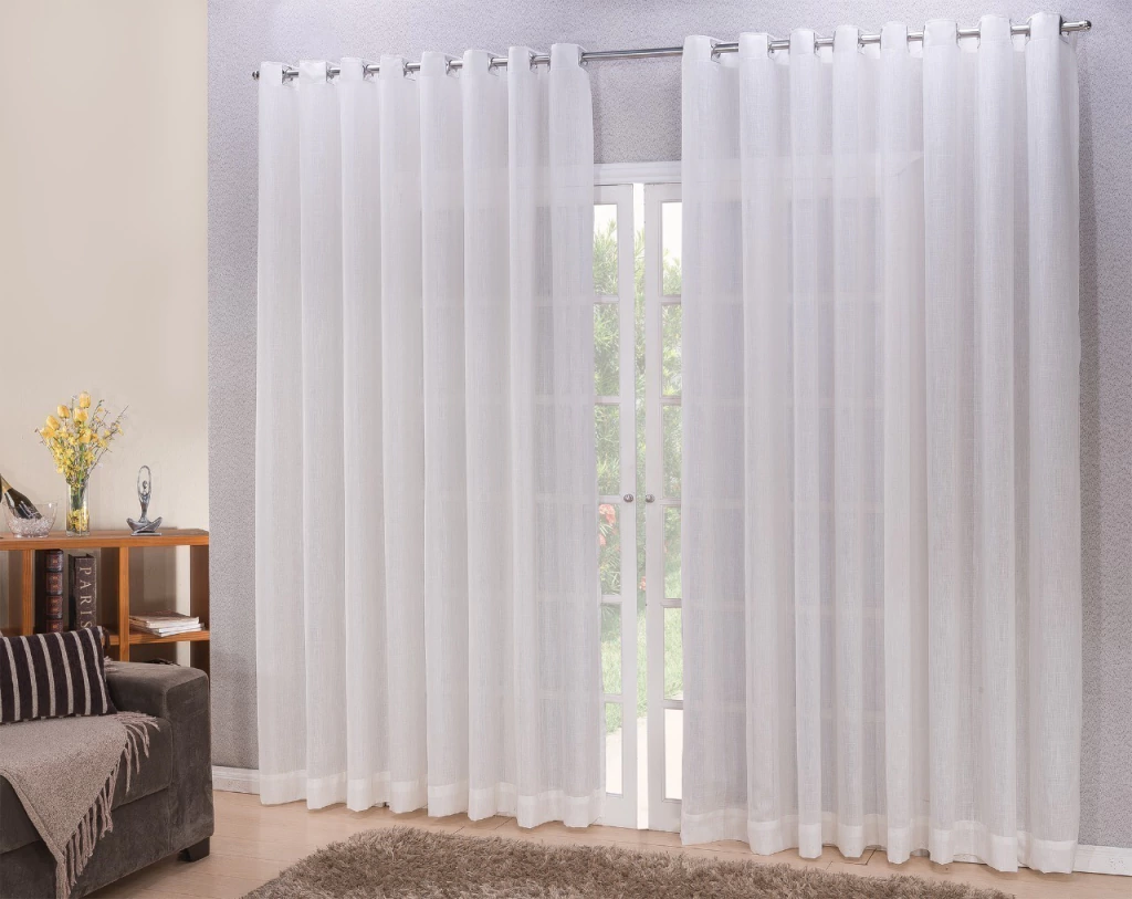 O tecido poliéster evita que a cortinaencolha após lavagens