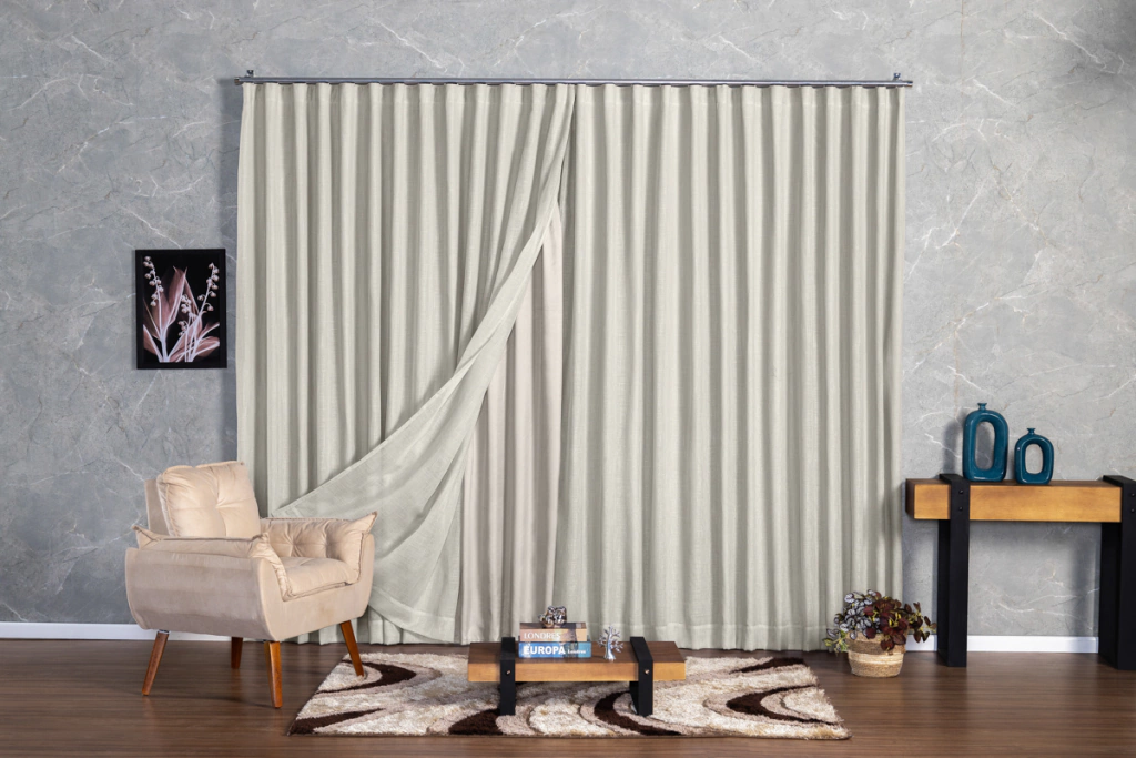 Transforme seu ambiente com a sofisticação e o conforto da nossa cortina de microfibra com linho. A combinação da leveza da microfibra com a textura natural do linho oferece um equilíbrio perfeito entre estilo e funcionalidade.O tecido filtra suavemente a luz, criando uma atmosfera acolhedora e elegante, ideal para quem busca um visual moderno e refinado para qualquer espaço.